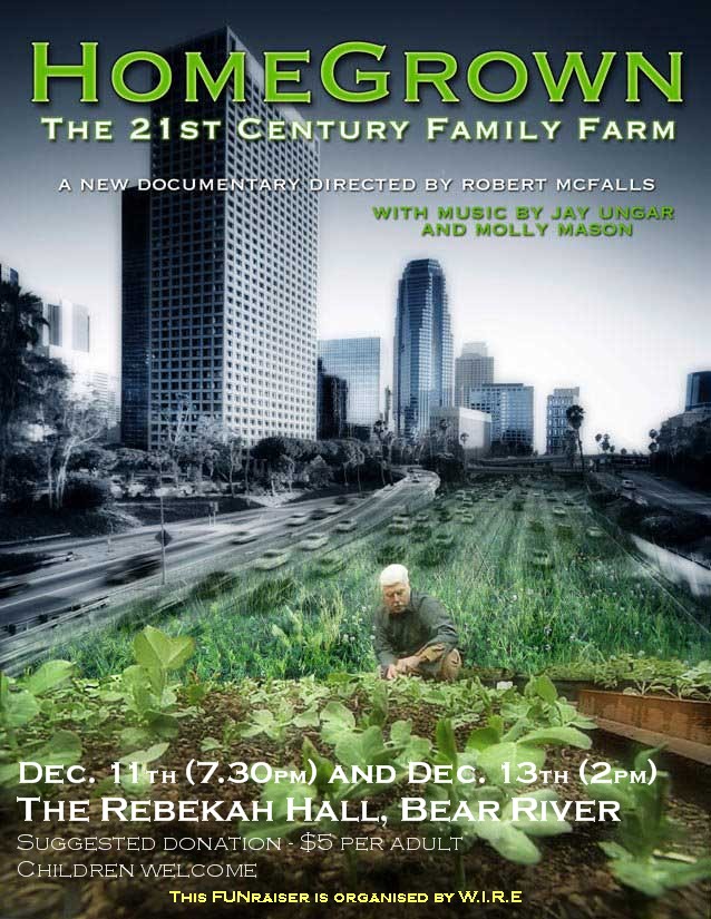 At the Rebekah Hall in Bear River a new non-profit group, W.I.R.E., has organized two screenings of Robert McFalls documentary, Homegrown,