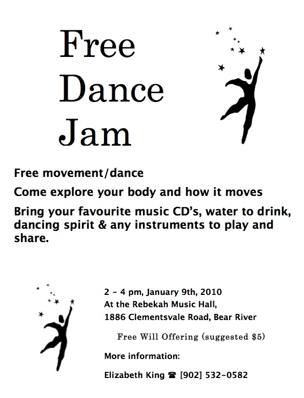 Bring water to drink, favorite music CDs, your dancing spirit and any instruments you want to play or share.
