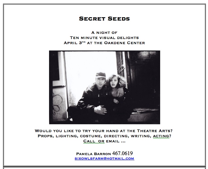 Are you interested in participating in Secret Seeds, an evening of original, short theatre pieces?