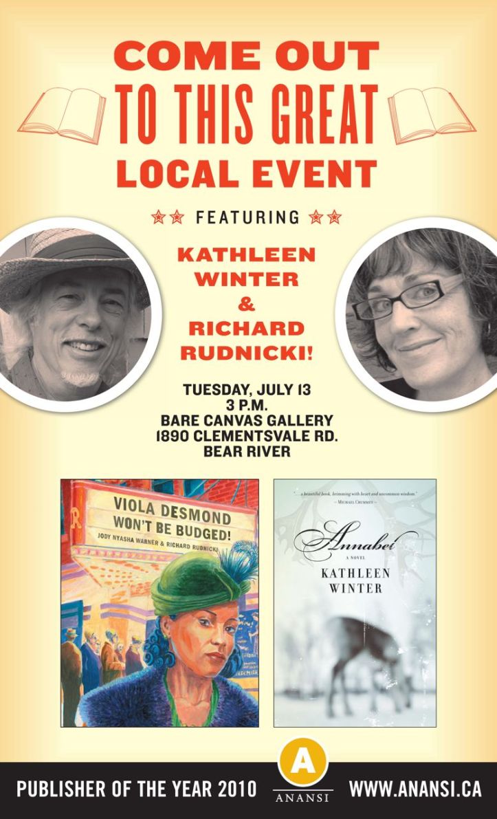 July 13 – 3 pm Writers Kathleen Winter & Richard Rudnicki read at the Bare Canvas Gallery in Bear River