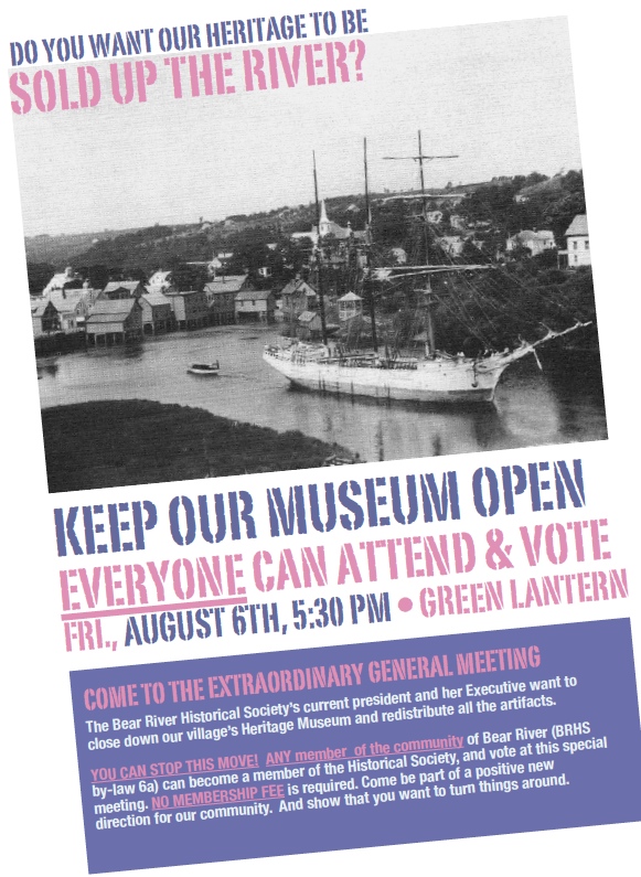 In a public meeting of the Bear River Historical Society, attended by over 50 people, a new Executive / Board of Directors was elected.