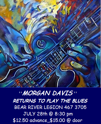 2012-07-23 Flora Doehler Morgan Davis plays the blues – July 28.12 Morgan Davis returns to play the blues @ the Bear River Legion on July 28th, 8:30pm. $12.50 advance tickets (467-3705), $15 at the door. This event is a fundraiser for the Legion. 44.574954 -65.640113 Share this:Tweet Click to print (Opens in new window) Print Click to email a link to a friend (Opens in new window) Email Share on Tumblr Click to share on Reddit (Opens in new window) Reddit Like Loading... Related