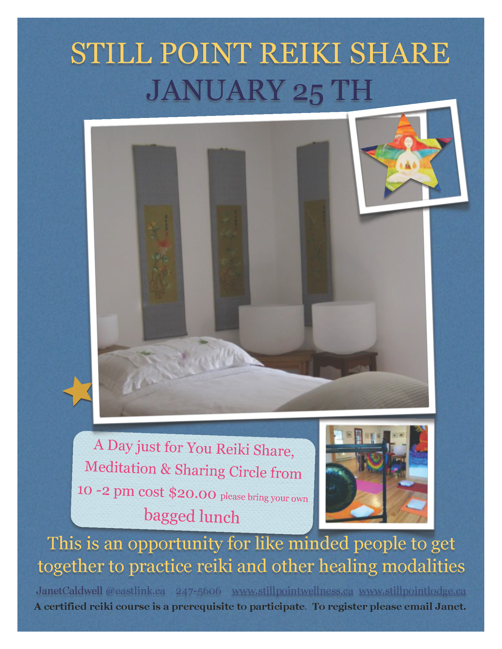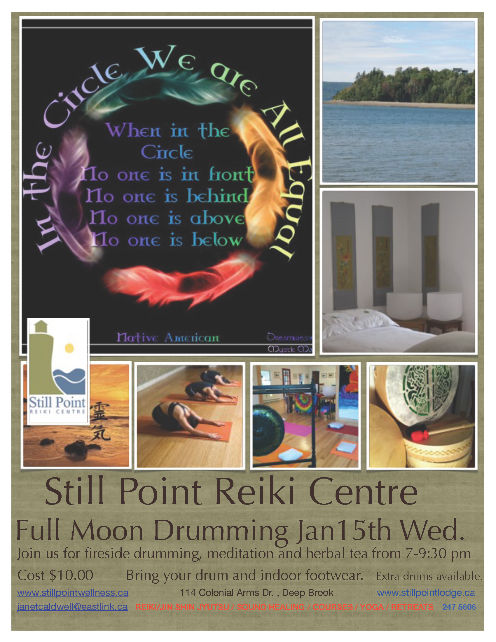2014-01-102014-01-06 Flora Doehler Full Moon – Jan 15** Reiki Share – Jan 25 Full Moon Drumming – Wed Jan 15 $10 Still Point Reiki Centre in Deep Brook. 247-5606 ——————————————– Reiki Share – Jan 25th $20 Still Point Reiki Centre in Deep Brook. 247-5606 44.574954 -65.640113 Share this:Tweet Click to print (Opens in new window) Print Click to email a link to a friend (Opens in new window) Email Share on Tumblr Click to share on Reddit (Opens in new window) Reddit Like Loading... Related