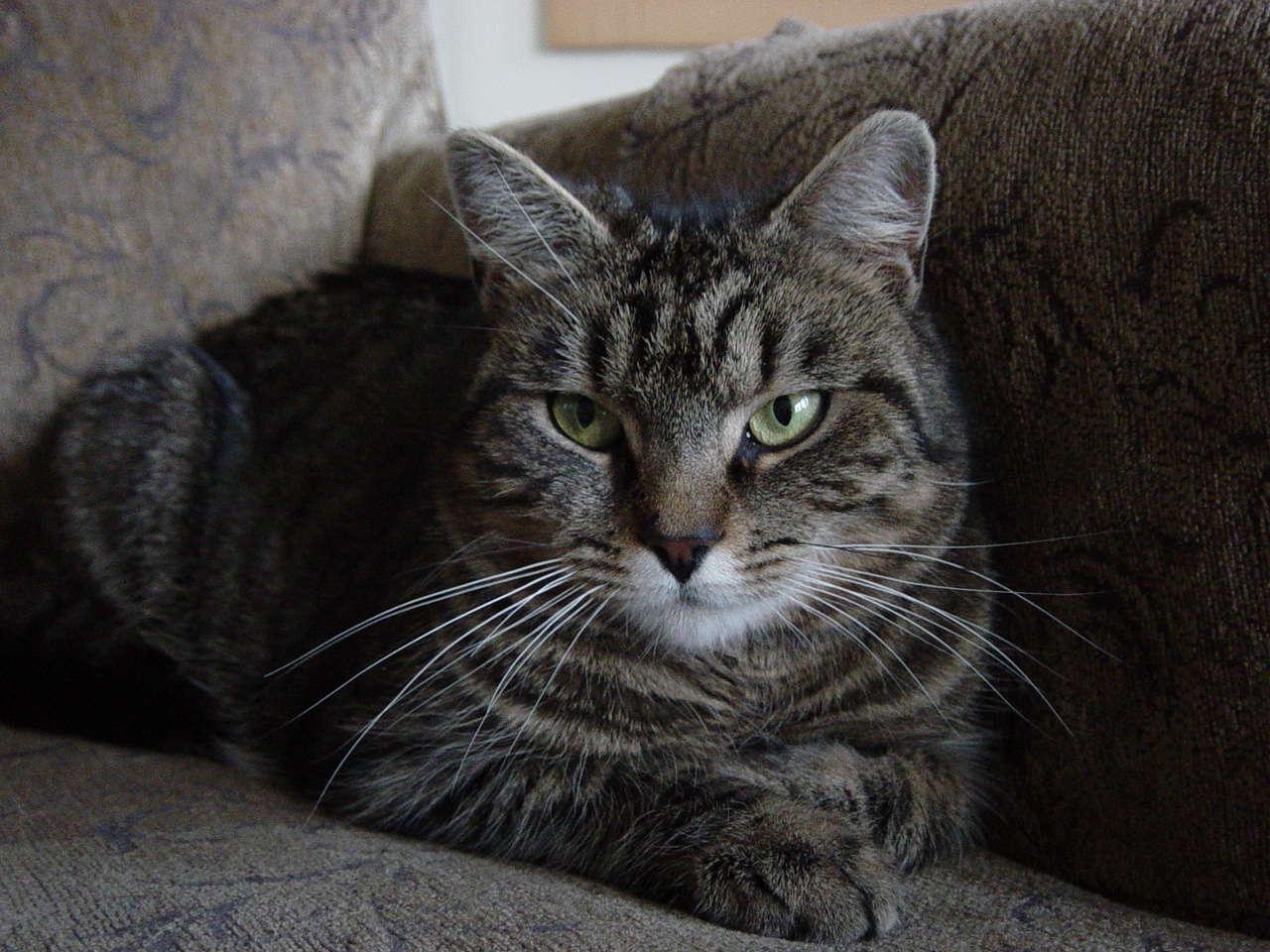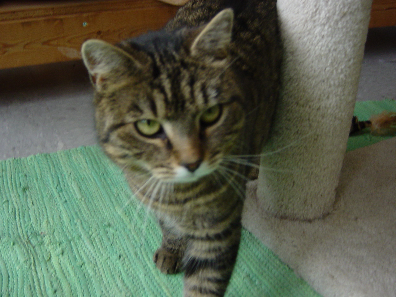 If you’re interested and would like to see her please let me know, or if you know of anyone who might be interested, please pass this email along. She’s a dark brown tabby about a year old, with gorgeous green eyes..