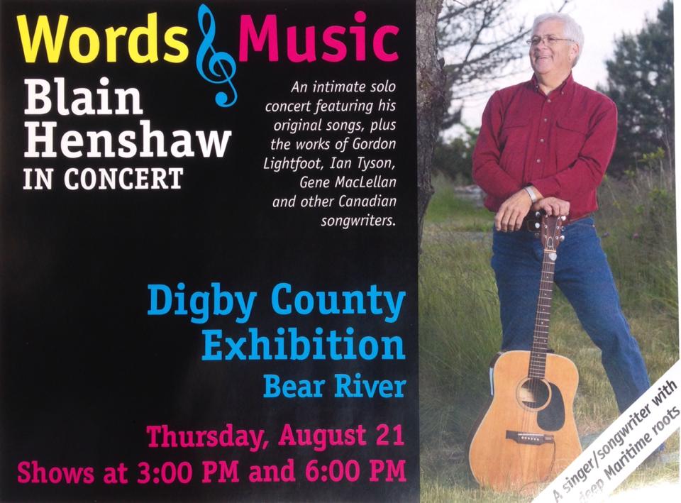 Blain Henshaw will perform at the Digby County Exhibition, Thursday, August 21st. Show times at 3:00pm and 6:00pm!