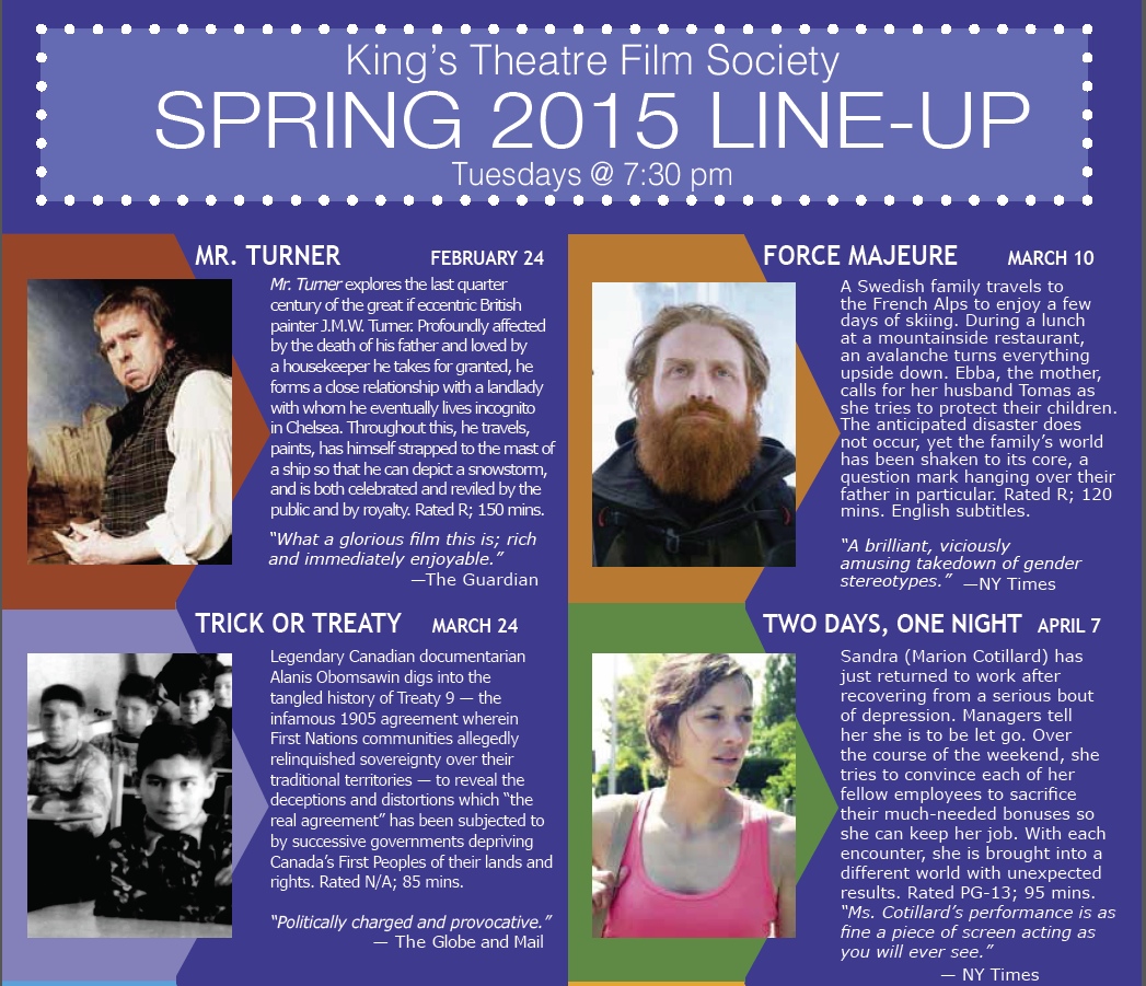See trailers and summaries @ http://kingstheatre.ca and on Facebook @