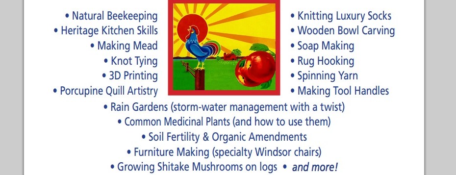 What a great opportunity this Thursday’s Up!skilling Festival is to meet and get acquainted with a sampling of the many skills of members of our local communities here in Western Nova Scotia. Some of these folk may well be unknown neighbours. Our rural future and its freedoms depend on our making new acquaintances, building internal trust within our communities as well as mechanisms for “Reclaiming the Commons for the Common Good” *