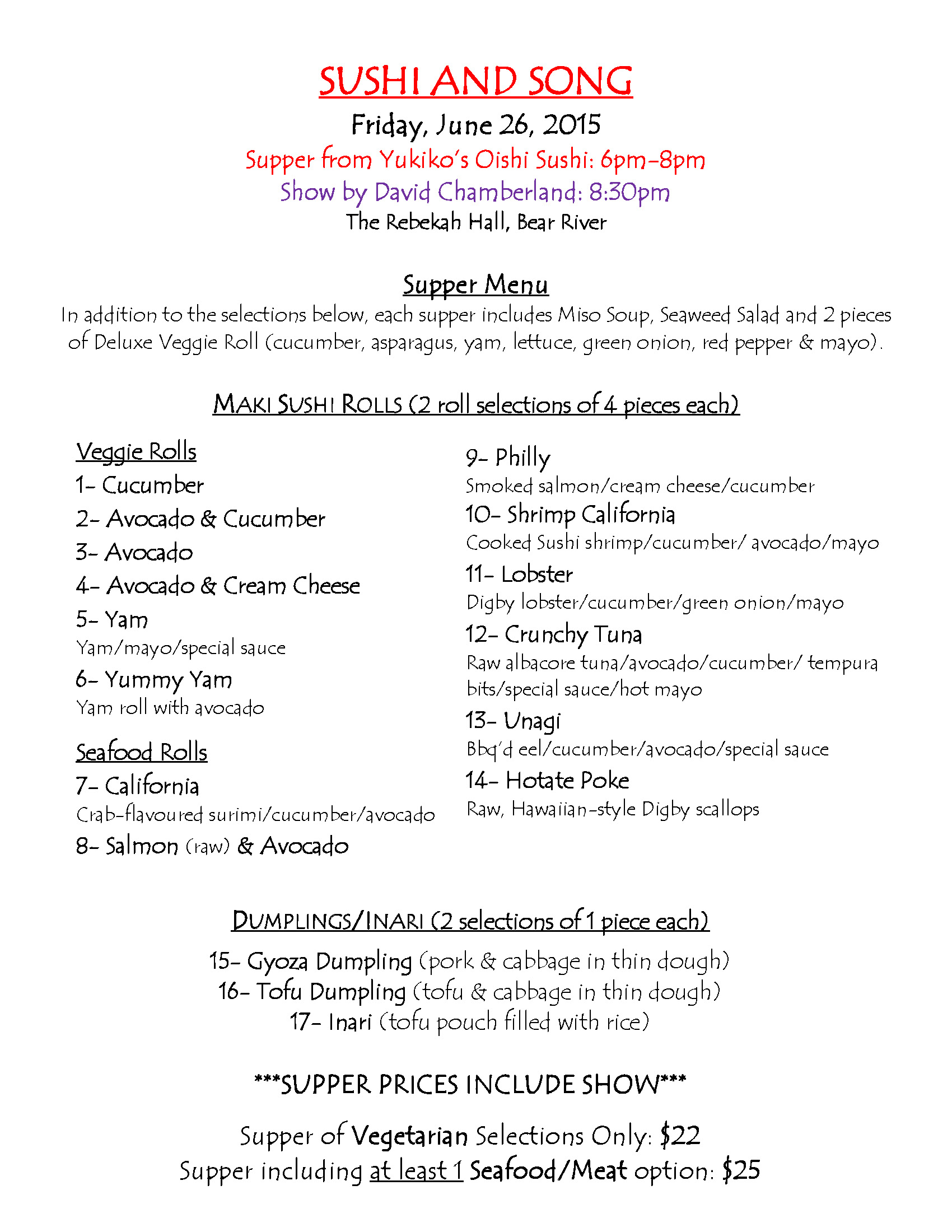 To Order & Purchase Tickets, email: sushiandsong@gmail.com