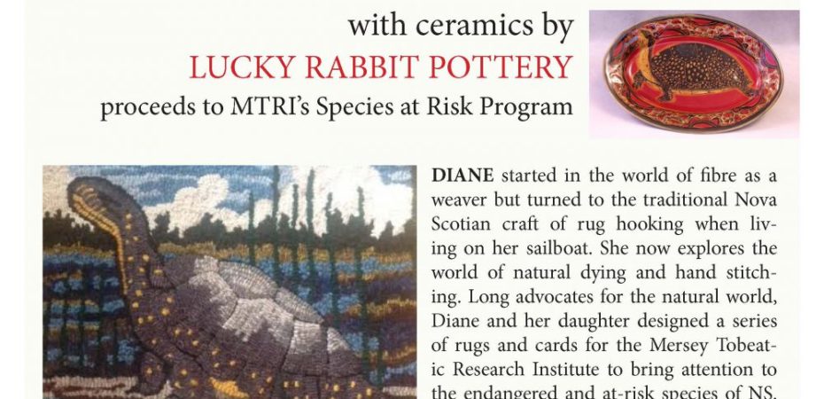 With contributions by Lucky Rabbit: ceramic tiles of NS species at risk will be for sale; as well, a large plate with picture of a Blanding’s turtle will be on silent auction for the duration of the show, starting bid $100.