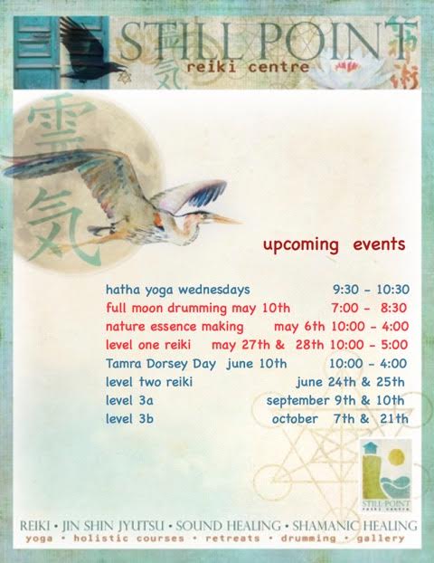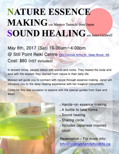 Upcoming Events and a word about our May 6th Saturday workshop, “Nature Essence Making and Sound Healing.”