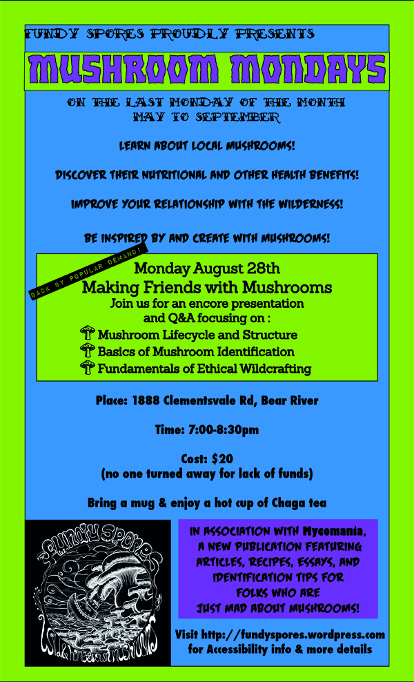 visit http://fundyspores.wordpress.com for Accessibility info & more details
