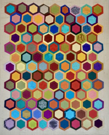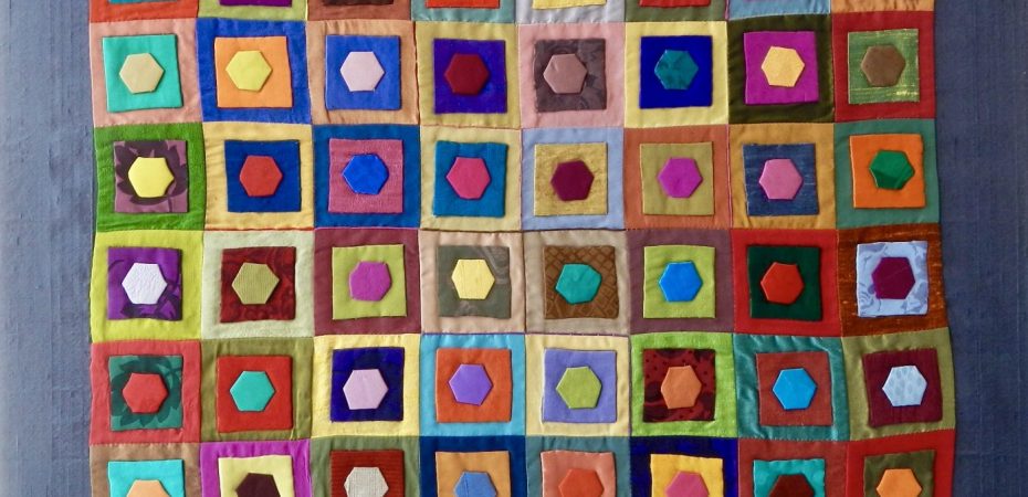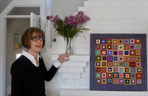 Marilyn combines her love of silk with her intense colour sense to bring us these stitched, playful works of art that seem to dance.