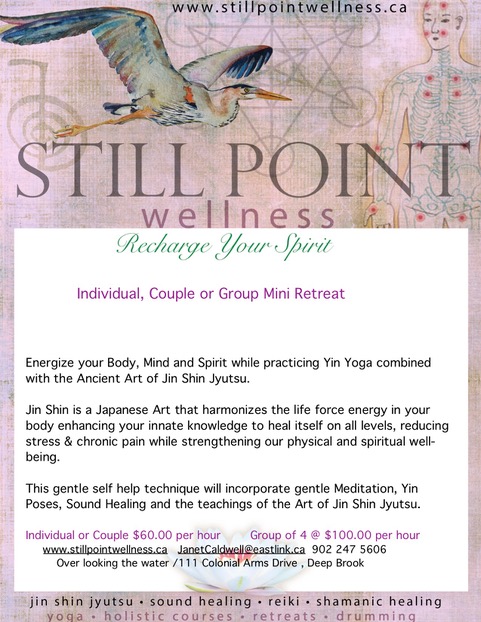 Still Point Wellness Centre is in Deep Brook at 110 Colonial Arms Drive. Follow the wooden walkway & the Heron signs to the waterside of the building and you will come to Door 111.