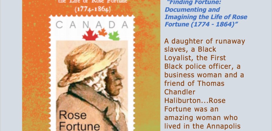 A daughter of runaway slaves, a Black Loyalist, the First Black Police Officer, business woman and friend of Thomas Chandler Haliburton, Rose Fortune was an amazing woman who lived in Annapolis Royal and became a legend known across Canada.