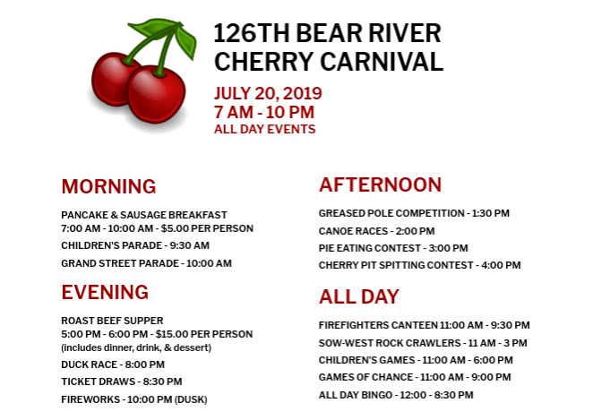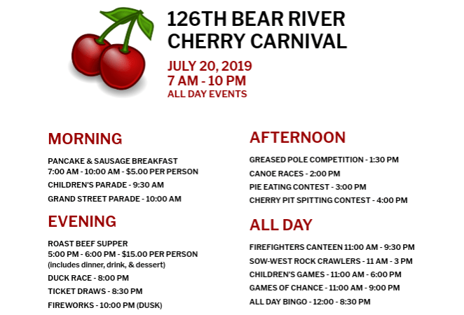 The Bear River Fire Department and Ladies Auxiliary present the 126th Bear River Cherry Carnival