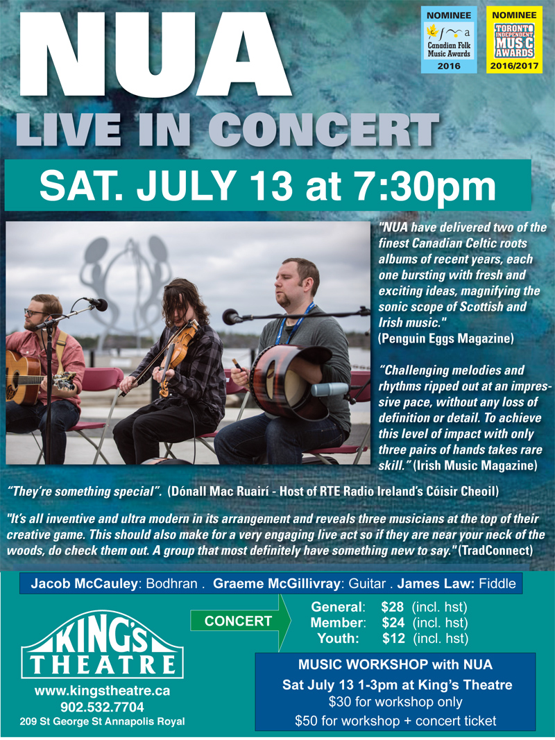 There are two events coming up at King’s Theatre in Annapolis Royal that I wanted to share because they involve Bear River musicians and friends.