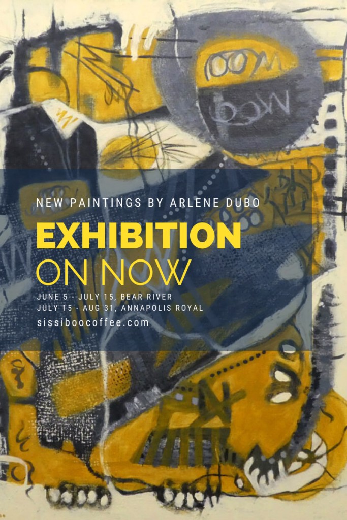 New paintings by Arlene Dubo. EXHIBITION ON NOW at Sissiboo Coffee Bar and Gallery, 1886 Clementsvale Rd, Bear River, NS Mon to Fri: 7:30 AM – 4 PM Sat: 7:30 AM – 4 PM Sun: 9 AM – 4 PM Show continues until July 15. sissiboocoffee.com (Open for takeout coffee and art)