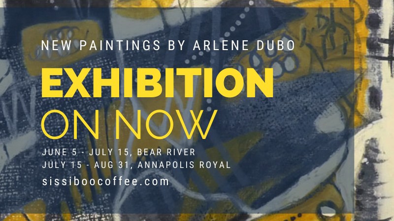 New paintings by Arlene Dubo. EXHIBITION ON NOW at Sissiboo Coffee Bar and Gallery, 1886 Clementsvale Rd, Bear River, NS Mon to Fri: 7:30 AM – 4 PM Sat: 7:30 AM – 4 PM Sun: 9 AM – 4 PM Show continues until July 15. sissiboocoffee.com (Open for takeout coffee and art)