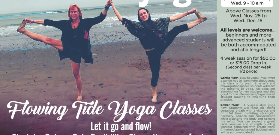 Power Vinyasa Flow Yoga (intermediate) from 9:00 a.m. to 10:00 a.m.Gentle Vinyasa Flow Yoga (beginner) from 10:30 until 11:30 a.m.