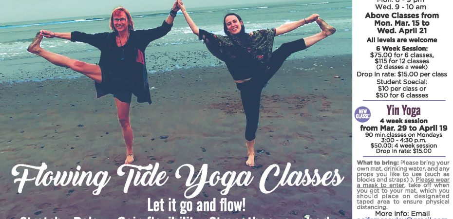 NEW! There will also be a 4 week Yin Yoga session on Monday afternoons from 3 until 4:30 pm (90 minute classes, with music) starting March 29th. $15 Drop In; $50.00 for 4 week session.