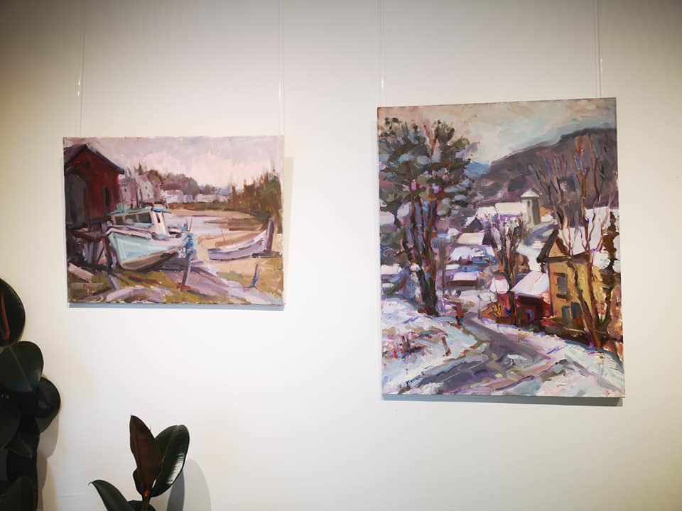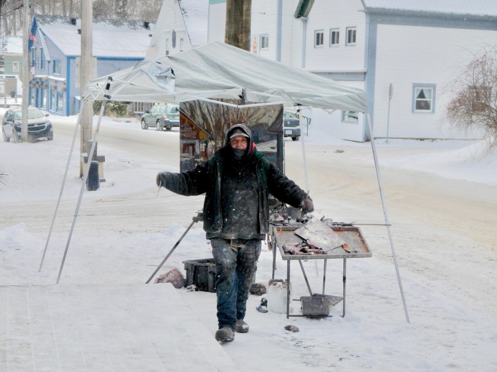 After years of watching Michel Doucet paint en plein air around the village (mostly in the winter!) we finally convinced him to let us show his work!