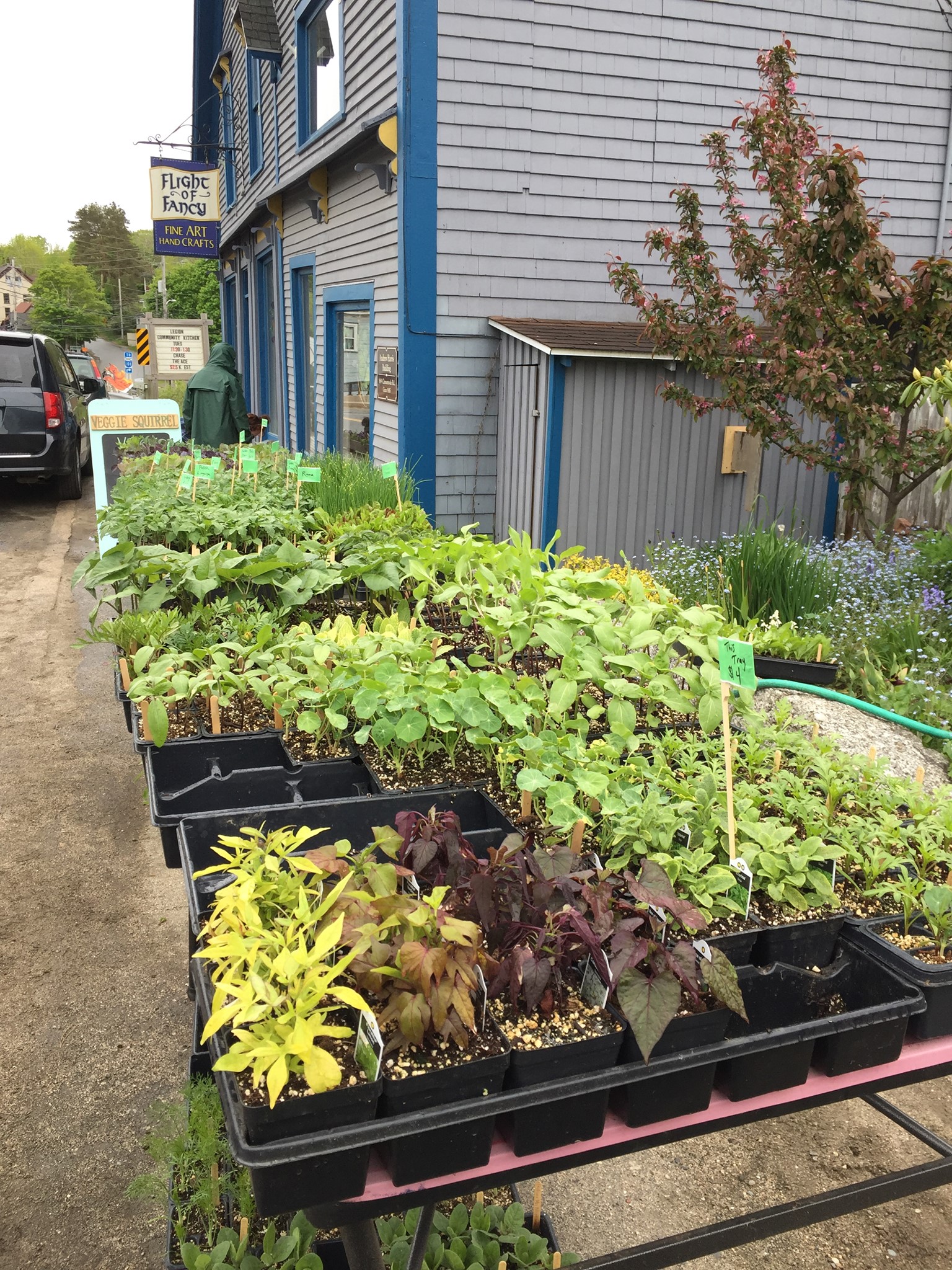 Veggie Squirrel, aka Jules, will have her variety of plants outside the Flight of Fancy in Bear River on Sat and Sun from 9-3. There are lots of heritage varieties of tomatoes, leeks, broccoli, squash and many, many more too numerous to to list. There are also a few flowers.