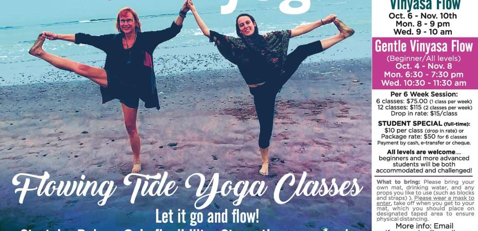 | NEW DATES! Update on YOGA CLASSES offered in BEAR RIVER taught by EVA McCAULEY. SIX WEEK SESSION starts on Oct. 4th. I’m delighted to be resuming teaching yoga classes in the gym at the Oakdene Centre in Bear River, and look forward to seeing you again! I wanted to update you on the new dates: for greater flexibility, I am teaching a 6 week session starting Oct. 4. As before, all levels of experience will be welcome. There will be two classes offered a week in both Gentle Flow Yoga (slower-paced, beginner level) and the Intermediate/Advanced Vinyasa Flow Yoga (faster paced, more challenging). COVID protocols will be in place, with masks worn upon entering the Oakdene and the gym, and masks taken off when you are on your mat. Mats are spaced 6 ft. apart (with tape on the floor as guidelines). Please email me if you have any questions, or would like reserve a spot and/or register. Email: aoifemccauley@gmail.com (Payment by cheque, e-transfer and cash are all accepted.) I’ve missed the yoga classes this summer and look forward to seeing you at the new fall session!! Please feel free to spread the word. ![]() All the best,Eva |