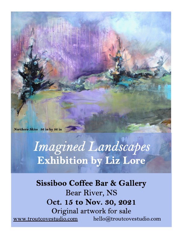 We are thrilled to present “Imagined Landscapes” by Digby Neck artist Liz Lore. On display in Bear River until Nov 30 and then moving to Annapolis Royal.