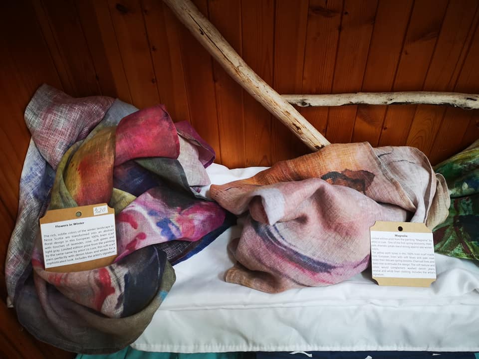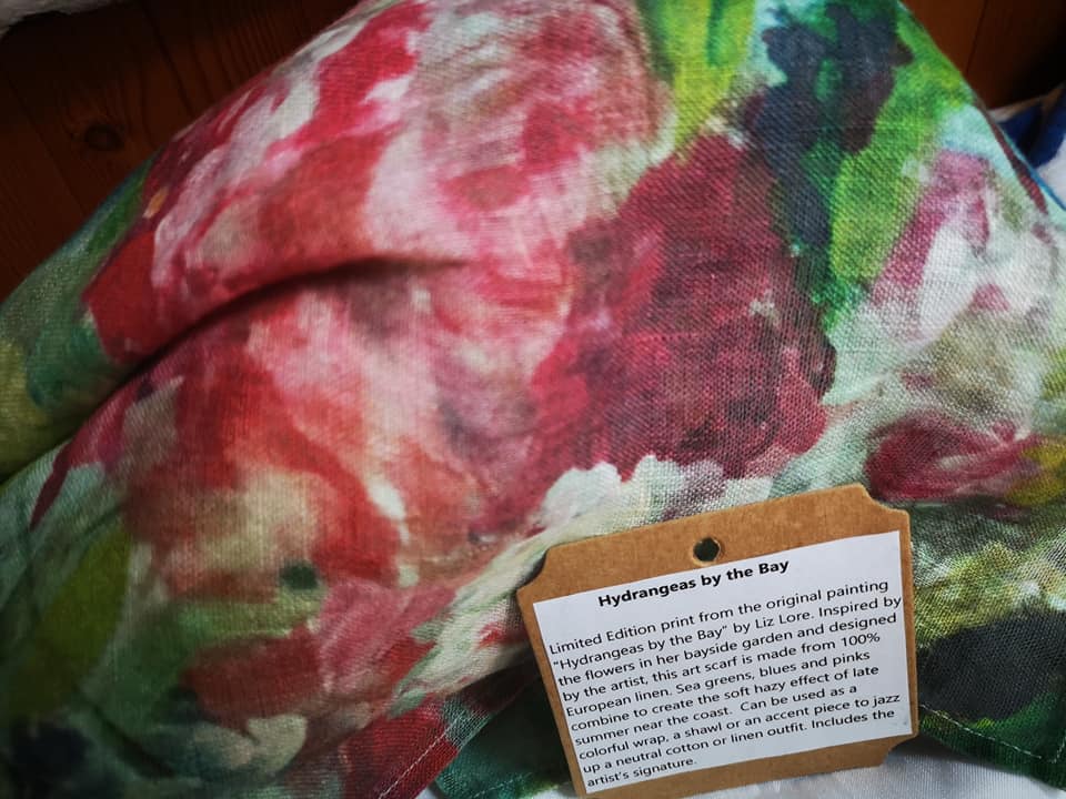 If you are out of wall space (don’t you hate when that happens?!), there are 4 limited edition scarves of original artwork by Liz printed on 100% European Linen.