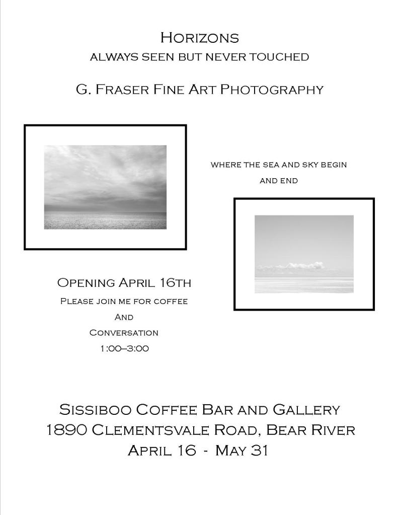 The show runs until May 31. Sissiboo Coffee is open until 4:00 pm daily.
