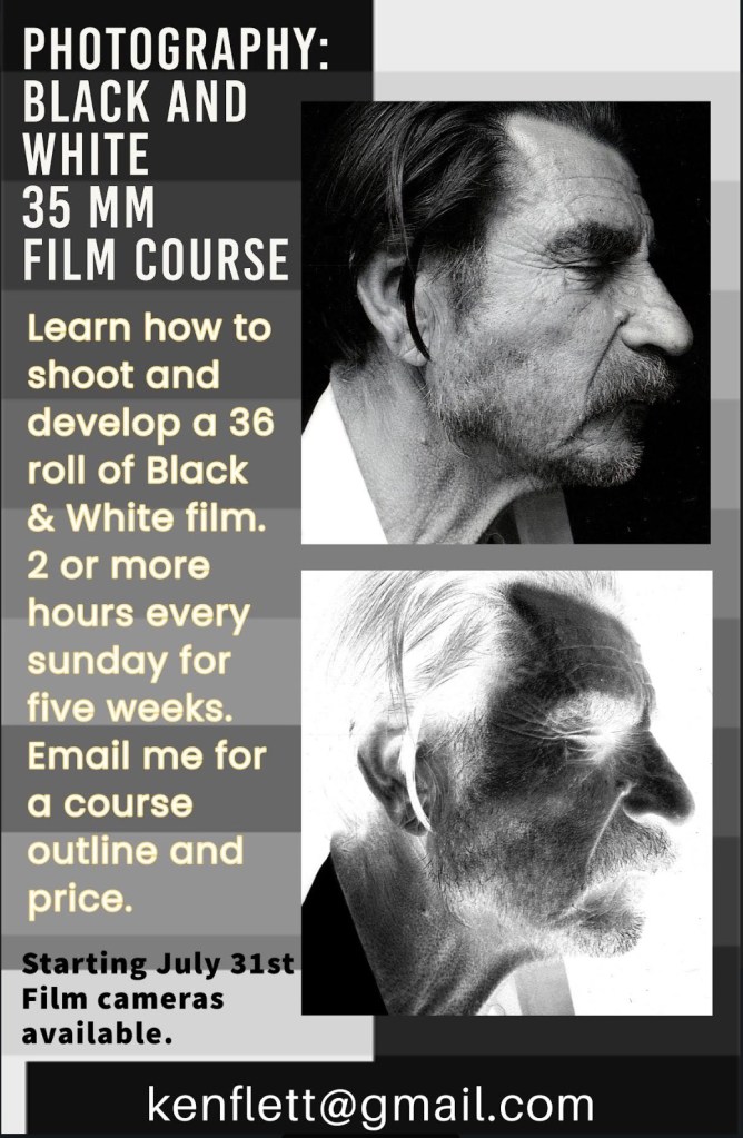 Participants will learn how to shoot and develop a 36 roll of black and white film and as well as learn how to print a contact sheet and an 8 x 10 inch black and white photographic print.