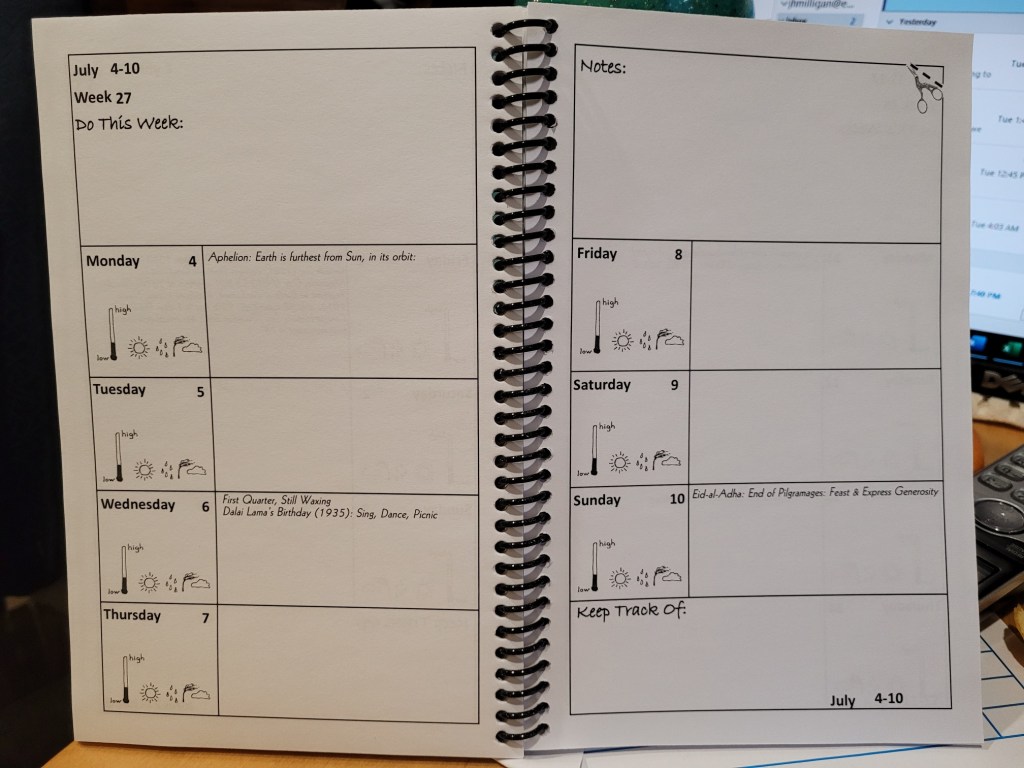 I miss Helen who departed this world a year ago. Through this daytimer she continues to help me shape my days, weeks and years and maybe her calendar can do the same for you!