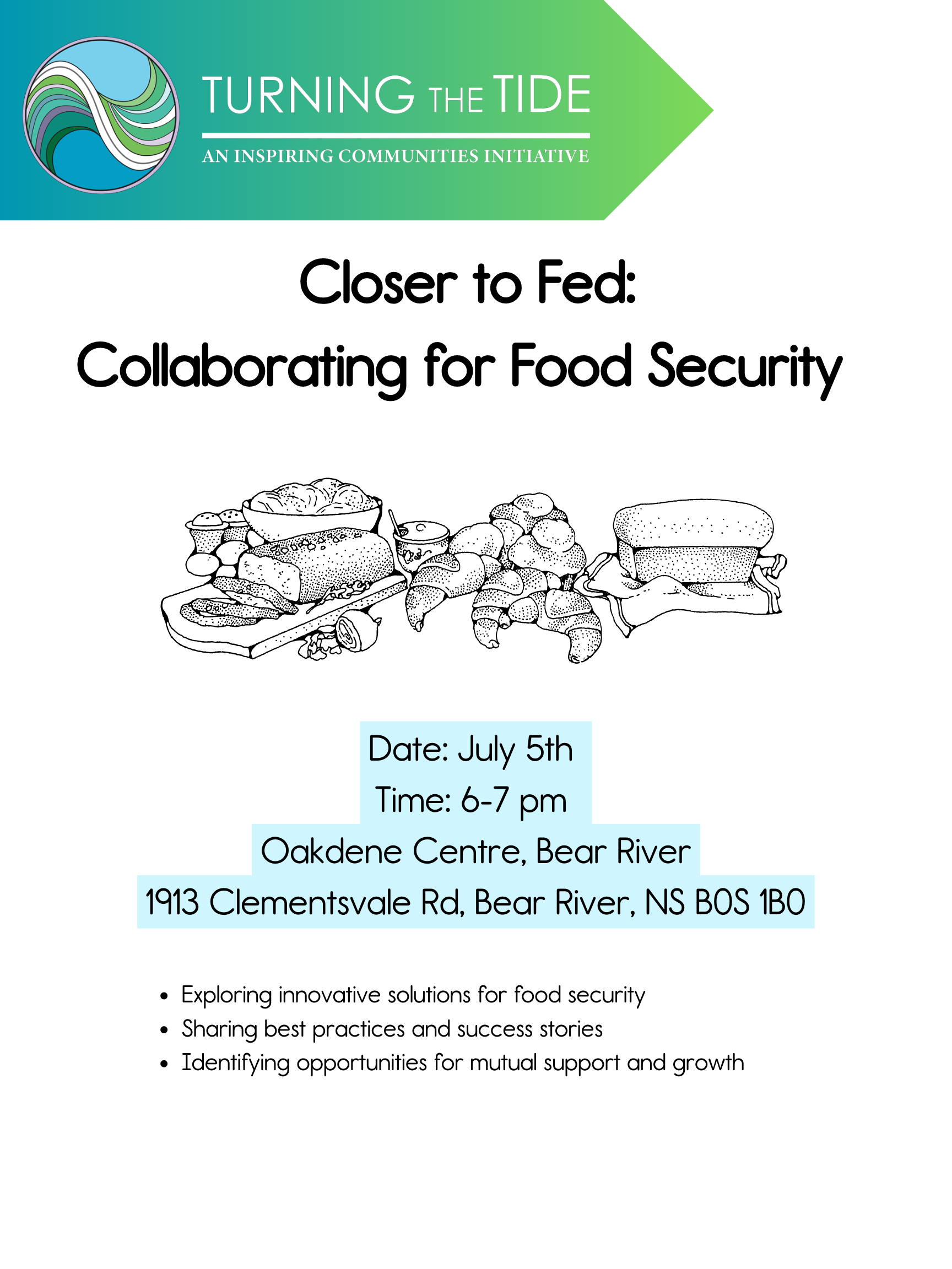 Turning the Tide / Inspiring Communities is hosting gatherings in a few communities in the Digby area. We plan to host gatherings in Digby, Weymouth, Brier Island, Barton-Brighton, and Bear River.