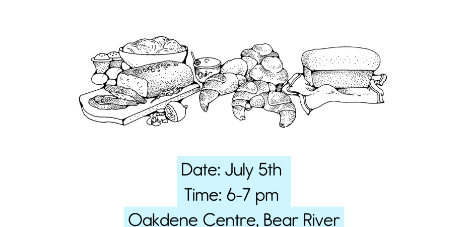 Oakdene Centre, Bear River on July 5th 6-7 p.m.
