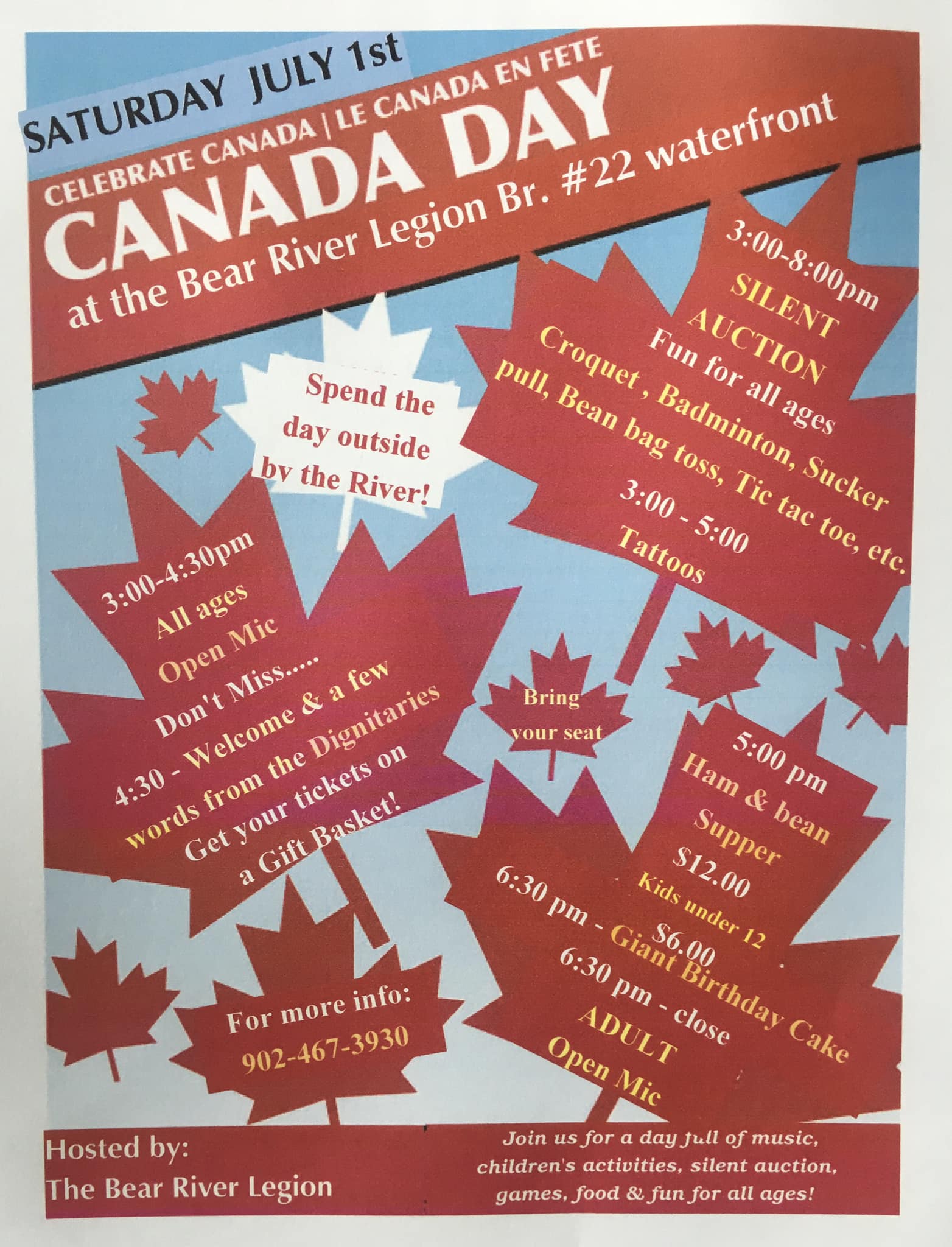 2023-06-292023-06-27 Bear River Arts and Action Canada Day in Bear River, 2023 Hosted by the Bear River Legion. Check out this and other Legion activities on their facebook page. Share this:Tweet Click to print (Opens in new window) Print Click to email a link to a friend (Opens in new window) Email Share on Tumblr Click to share on Reddit (Opens in new window) Reddit Like Loading... Related