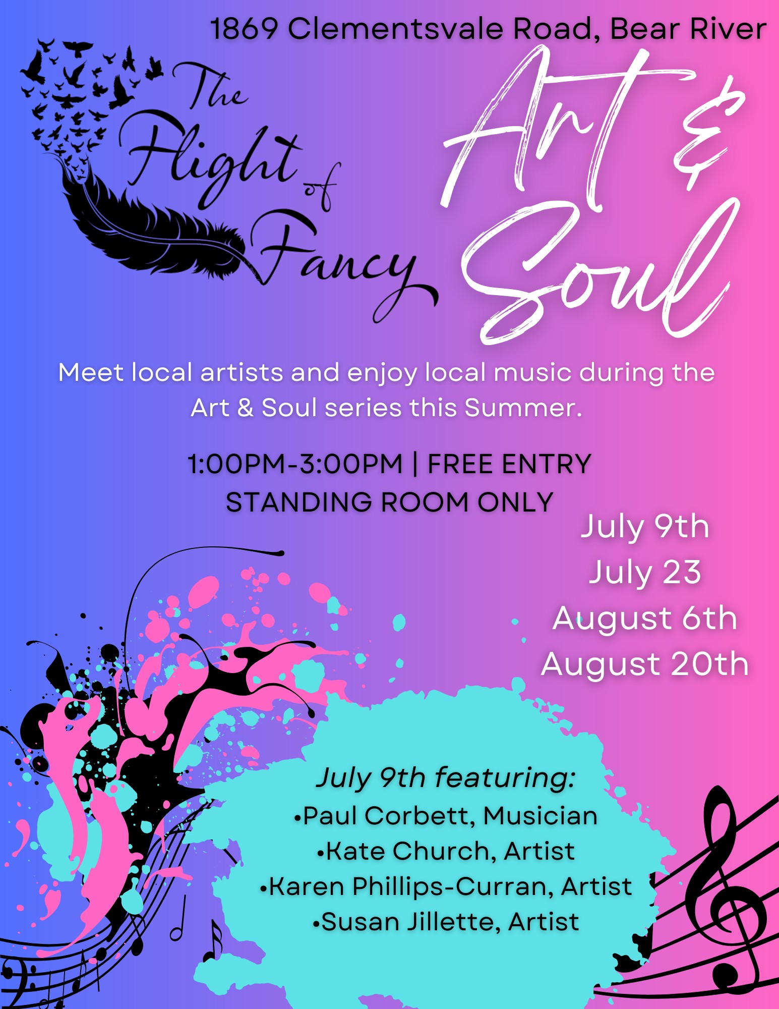 On Sunday, July 9th, we’ll be jamming again during Art & Soul so be sure to drop in! Paul Corbett will be playing some good ol’ 70’s folk rock to keep you entertained!