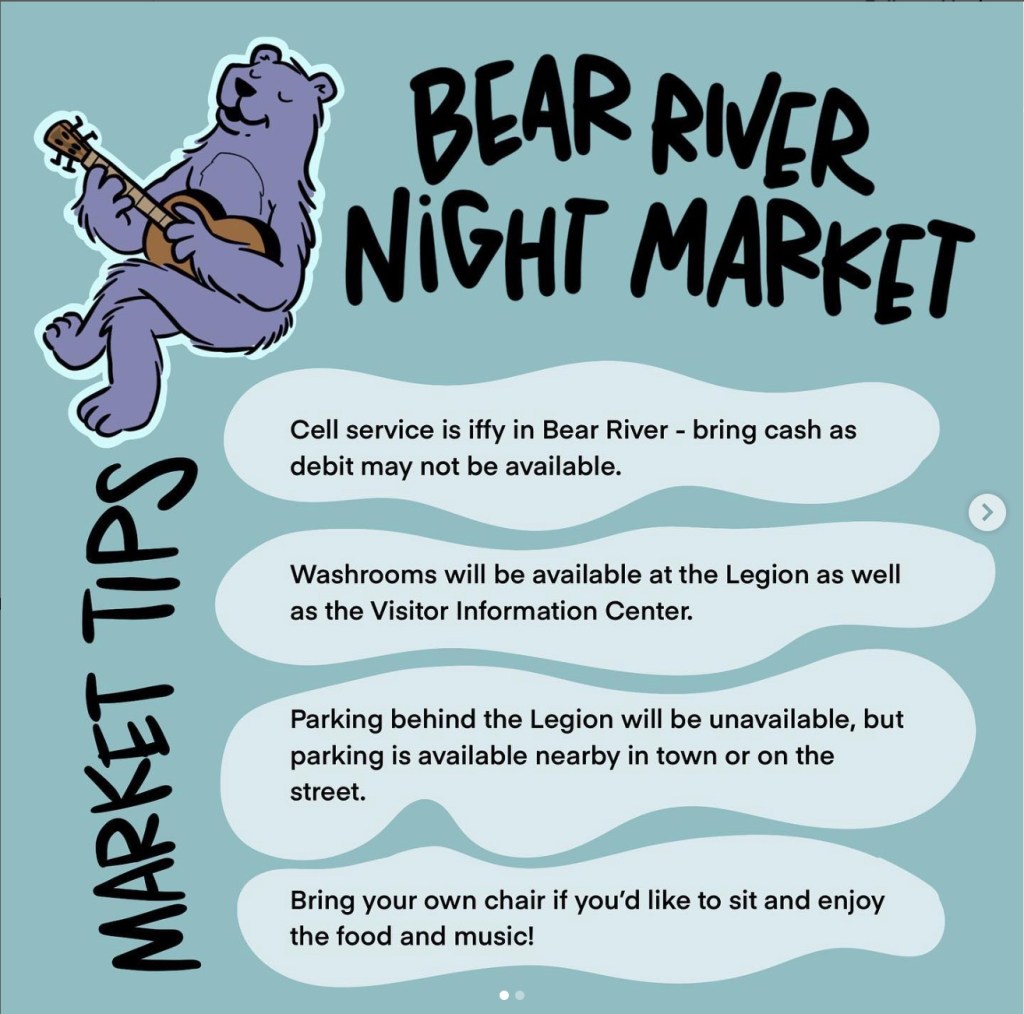 The event is sponsored and organized by Bear River Board of Trade with thanks to the Bear River Legion, the Bear River Economic Development Society, and especially to Molly and AJ, Drew and Dom and Saranna and David and other behind-the-scenes folks. Thanks to all the vendors who are bringing their deliciousness to the village.