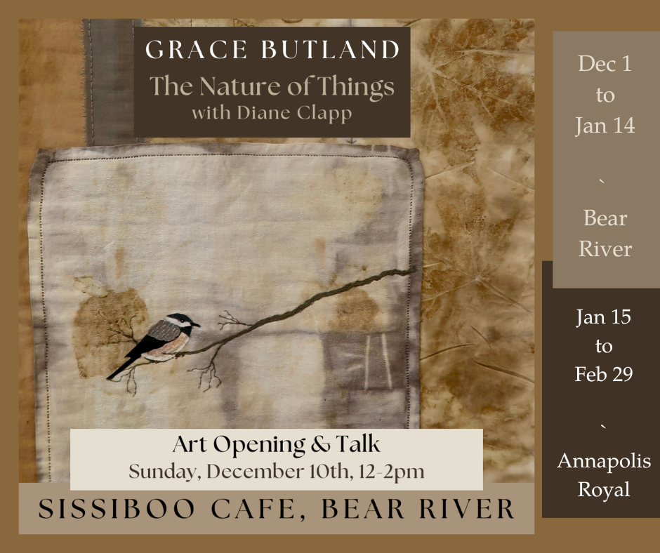 Sunday Dec 10th 12 – 2 pm. Diane and Grace will be at Sissiboo Cafe in Bear River to present their work and speak to their unique processes and inspirations.