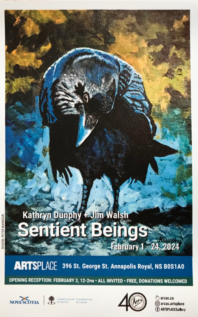 Bear River artists Kathryn Dunphy & Jim Walsh invite you to their exhibition of works on the theme Sentient Beings, the Beings being creatures of the human and animal kind who have stirred an “ohh” response in the artists.