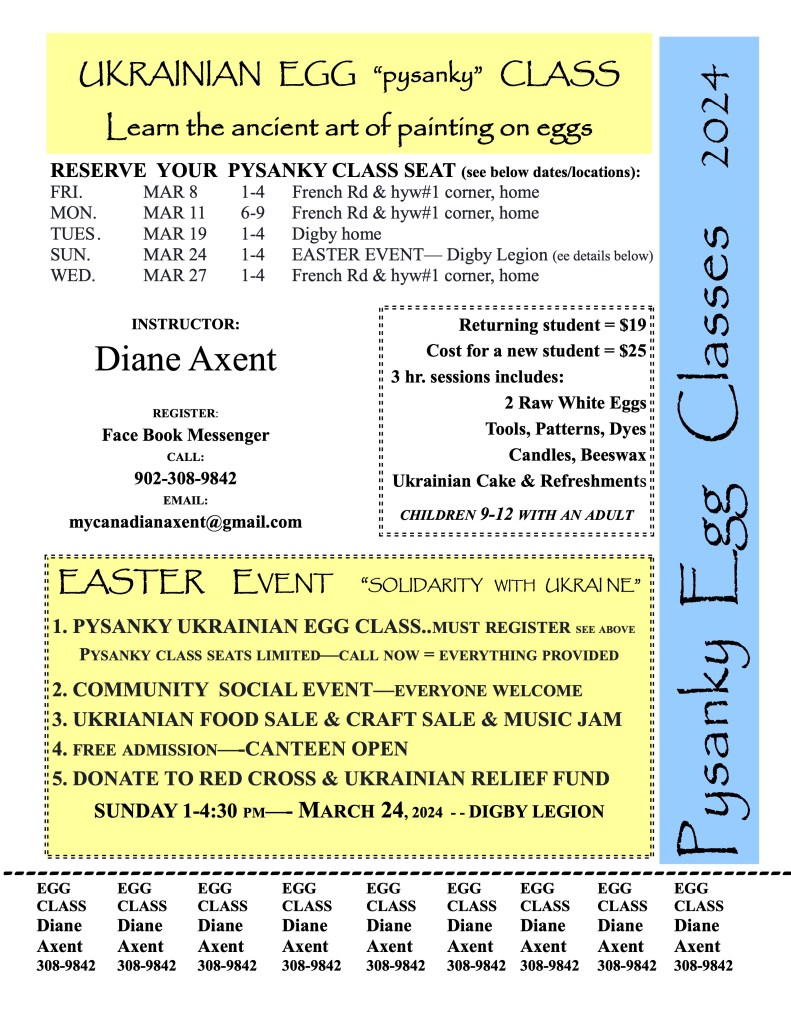 4. PYSANKY UKRAINIAN EGG CLASS – MUST pre-REGISTER 902 308 9842