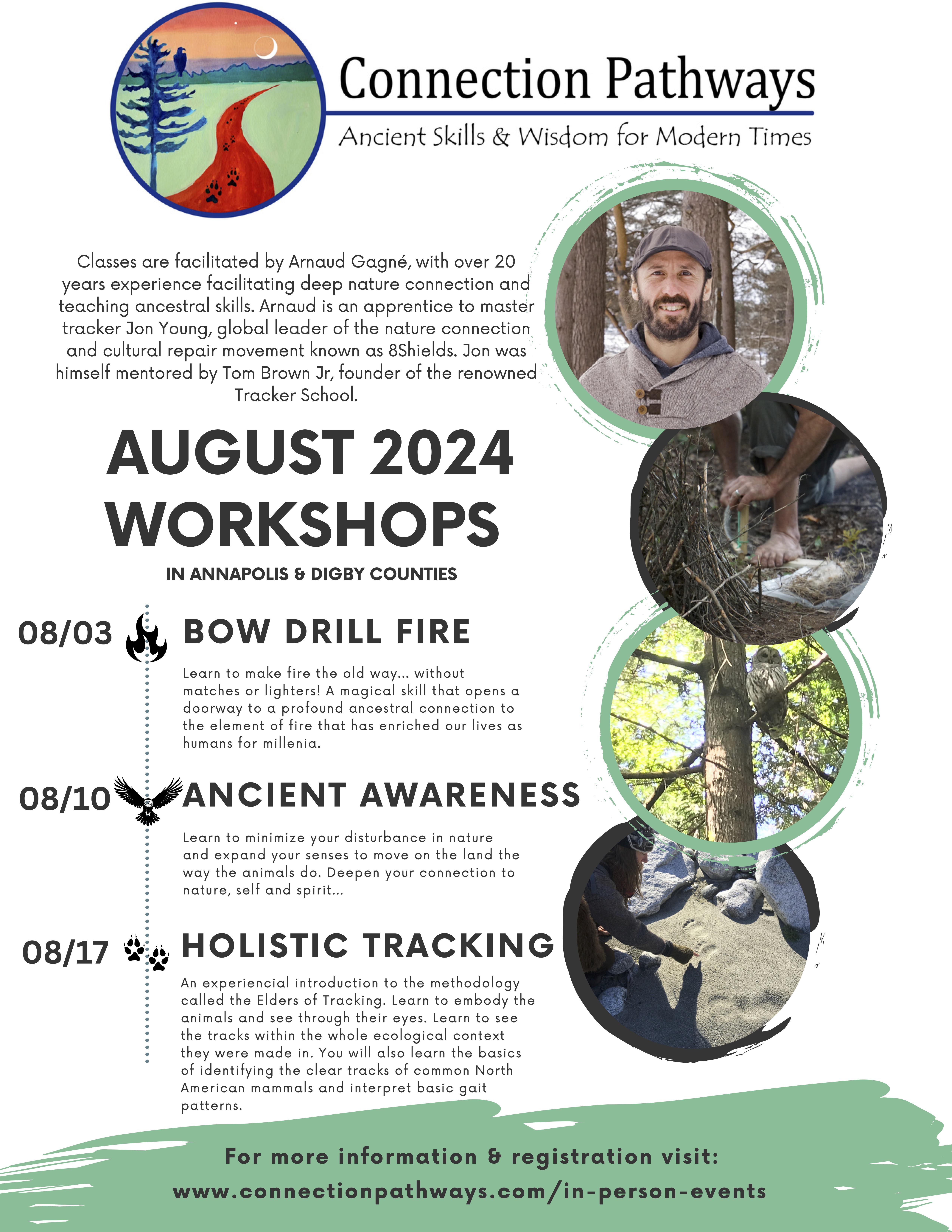 Classes are facilitated by Arnaud Gagné, with over 20 years experience facilitating deep nature connection and teaching ancestral skills.