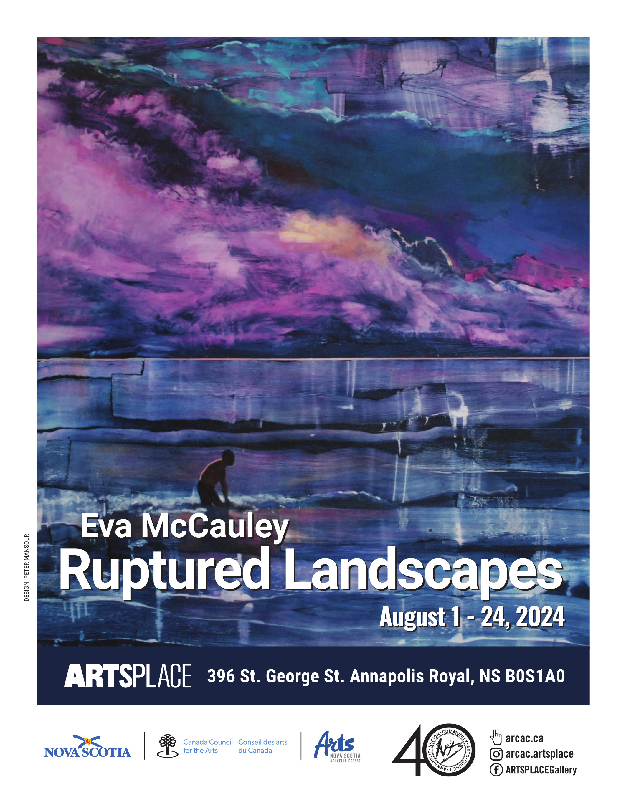 You are warmly invited to attend the opening reception of ‘Ruptured Landscapes’, a solo painting exhibition by Bear River artist Eva McCauley, on Saturday, August 3, from 12 to 3 p.m. in the Chapel Gallery at ARTSPLACE Gallery in Annapolis Royal.