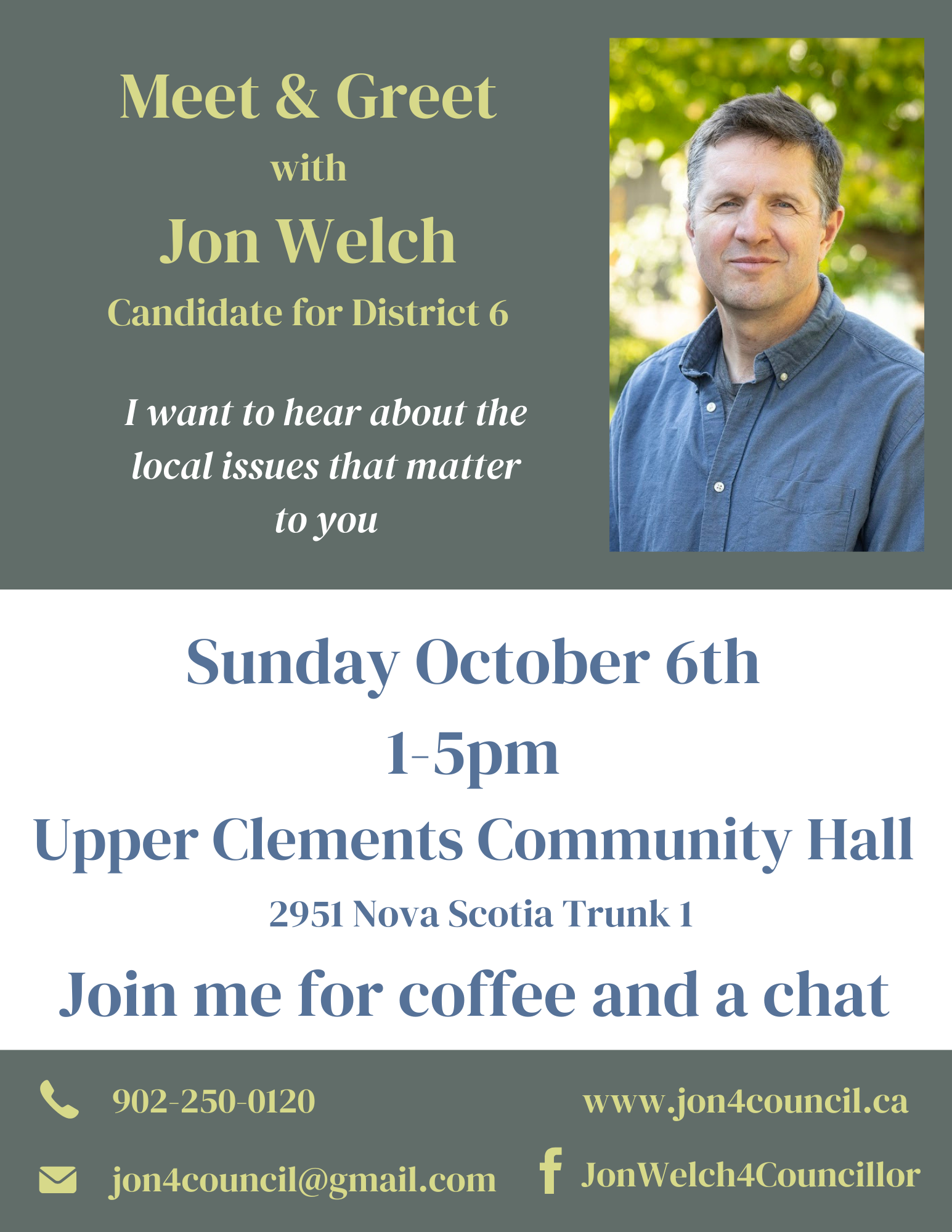 Jon Welch is running for a seat on the municipal Council of Annapolis County. He’s running in District 6 which stretches from Deep Brook to Allain’s Creek. Check out his website for detailed information about him and his vision for the region at www.jon4council.ca