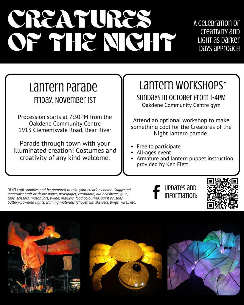 The next evening Bear River will continue celebrations on All Hallows Day, November 1, with the Creatures of the Night Lantern Parade by artists at Oakdene Community Centre, followed by the Witches Ball at the The Village Cauldron Cafe and Market![]()