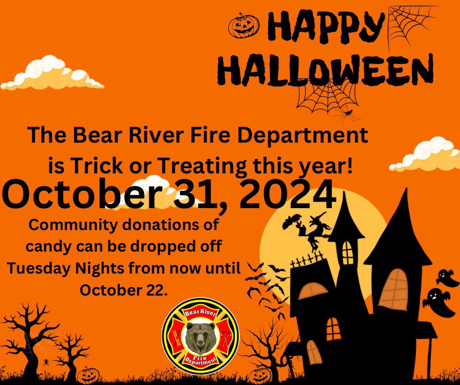 Join us on All Hallows Eve on October 31 as the community celebrates with trick or treating at the the Bear River Fire Department, followed by the Spooky Trail at Lazy Bear Brewing![]()