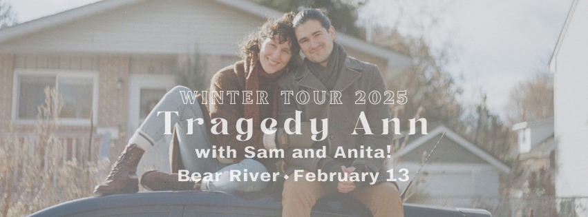 “Honorary Bear-Rivians” Tragedy Ann (Liv Cazzola and Braden Phelan) return to Bear River on their Winter 2025 tour of the Maritimes!