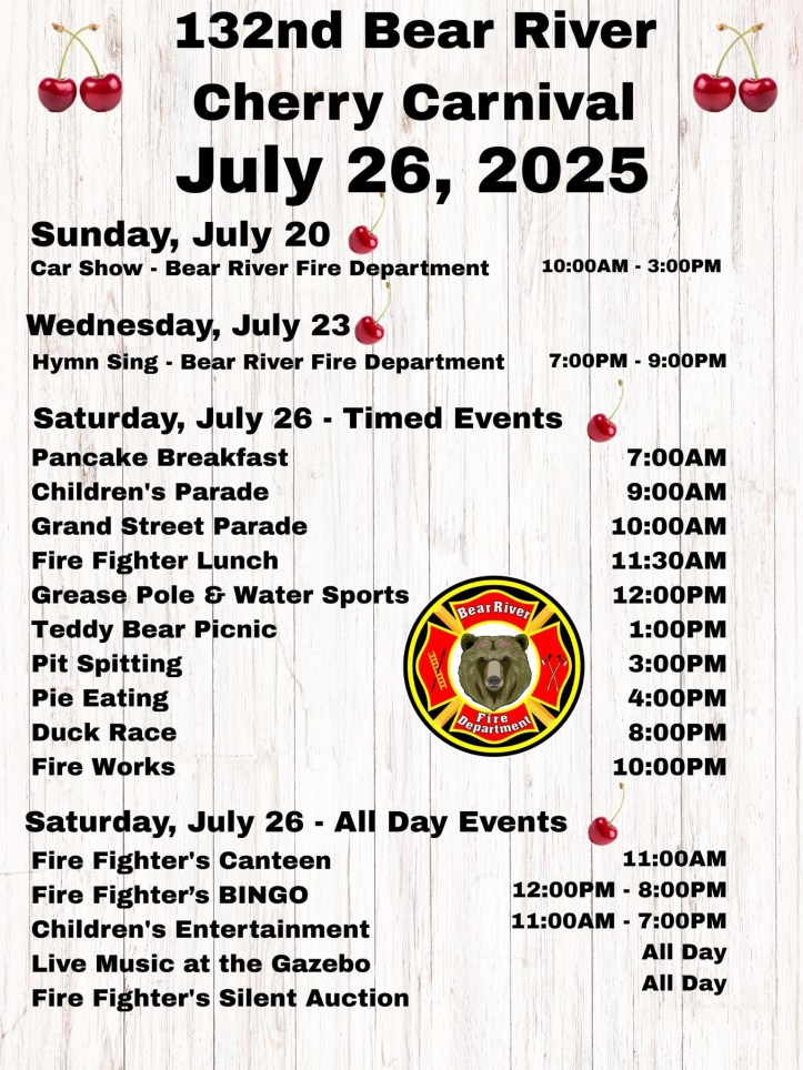 Today, visitors from across North America travel to Bear River to take part in the Cherry Carnival. We thank you for joining us in celebrating this unique and historically significant event.
