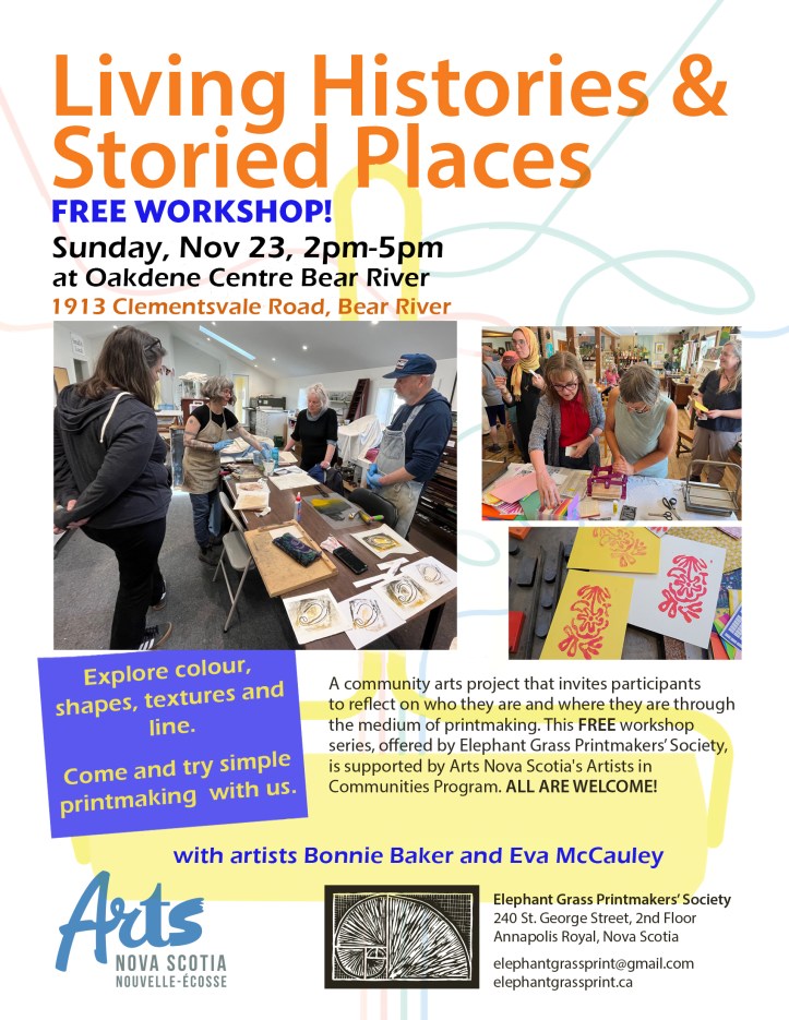 Through our Living Histories & Storied Places project, EGPS is finding ways for members of diverse communities to come together, share experiences, and shape them into art by offering free workshops and building new connections. Living Histories & Storied Places is supported by Arts Nova Scotia’s Artists in Communities program.