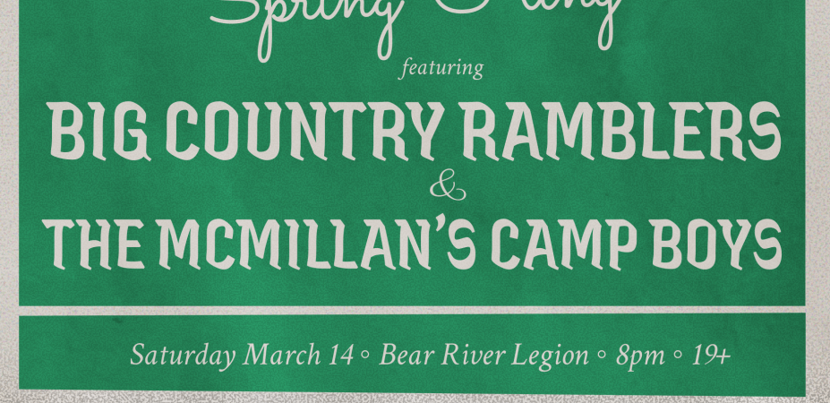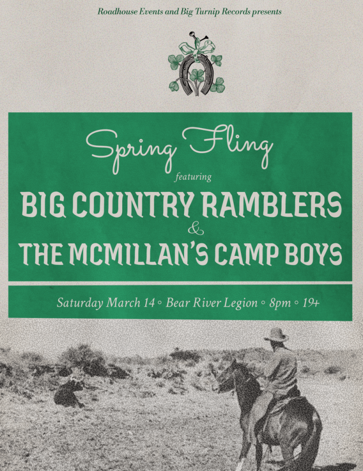 Come shake off the Winter blues with a wild dance to welcome in Spring. Two country bands will be showing us a good time.