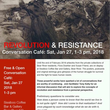 Conversation Café – REVOLUTION & RESISTANCE – Sissiboo Coffee, Bear River- Jan 27, 2018